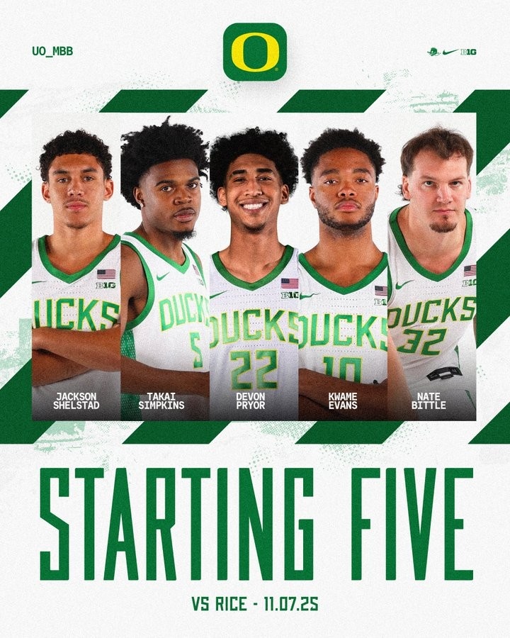 11月8日讯 NCAA常规赛,俄勒冈大学VS莱斯大学,赛前首发阵容公布。